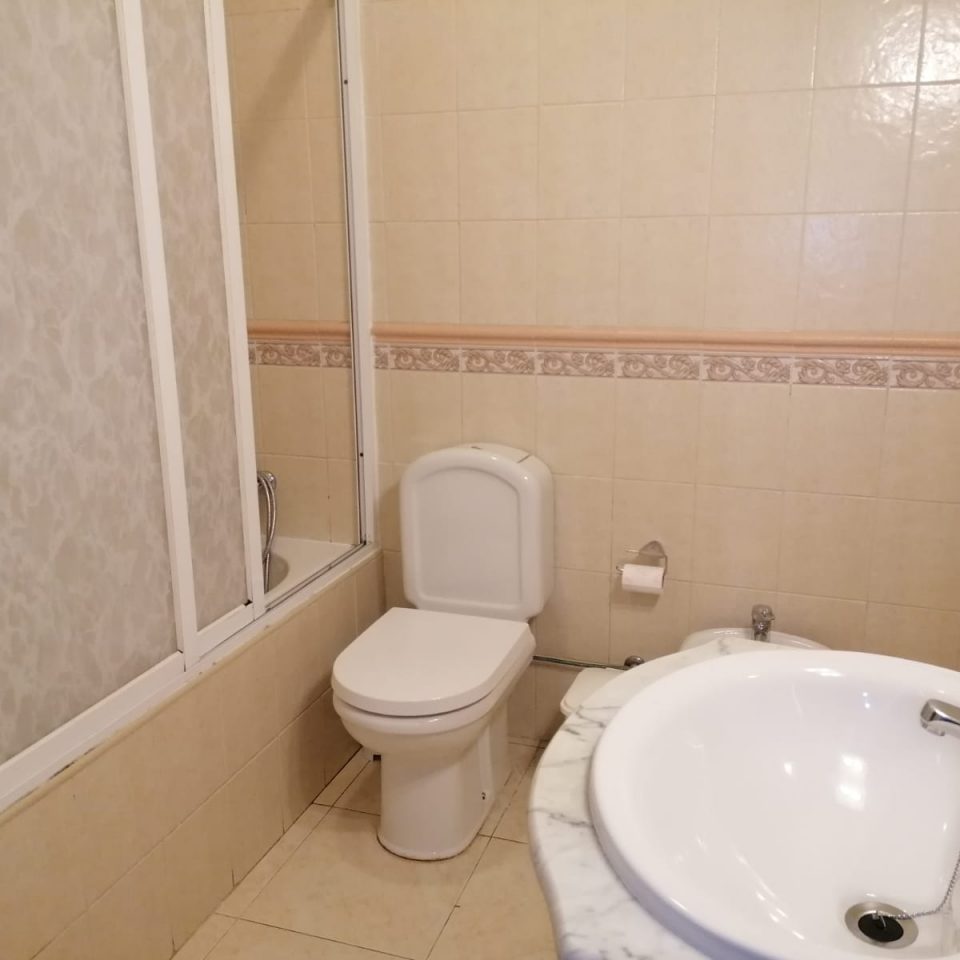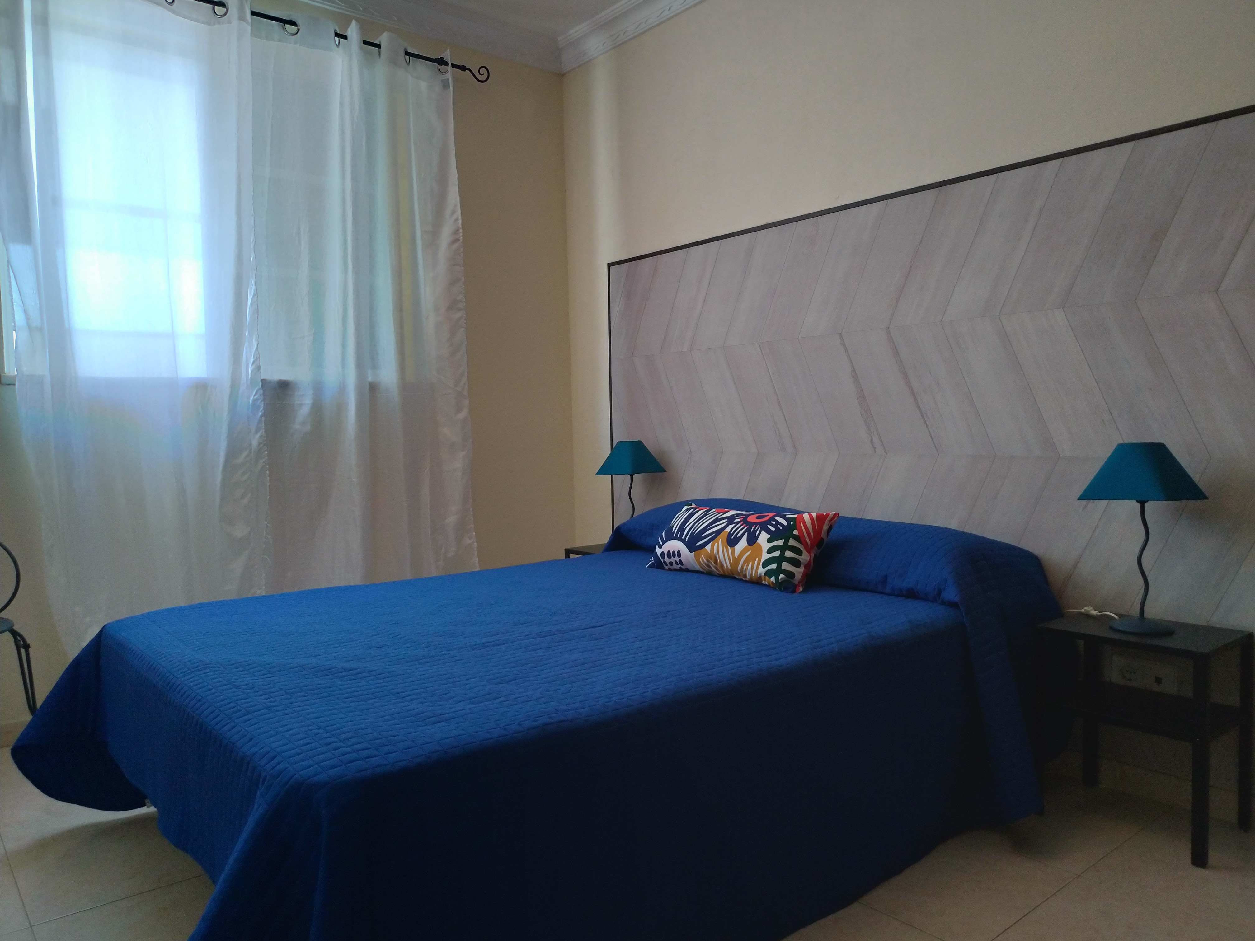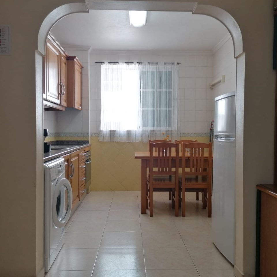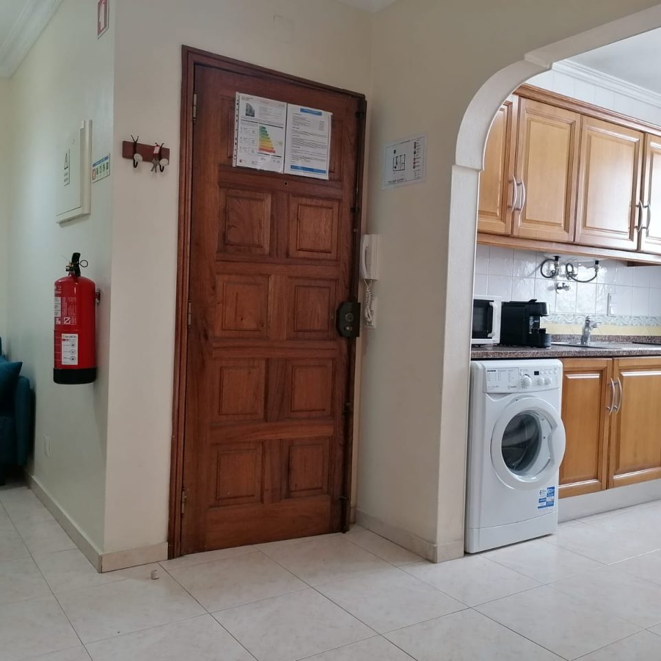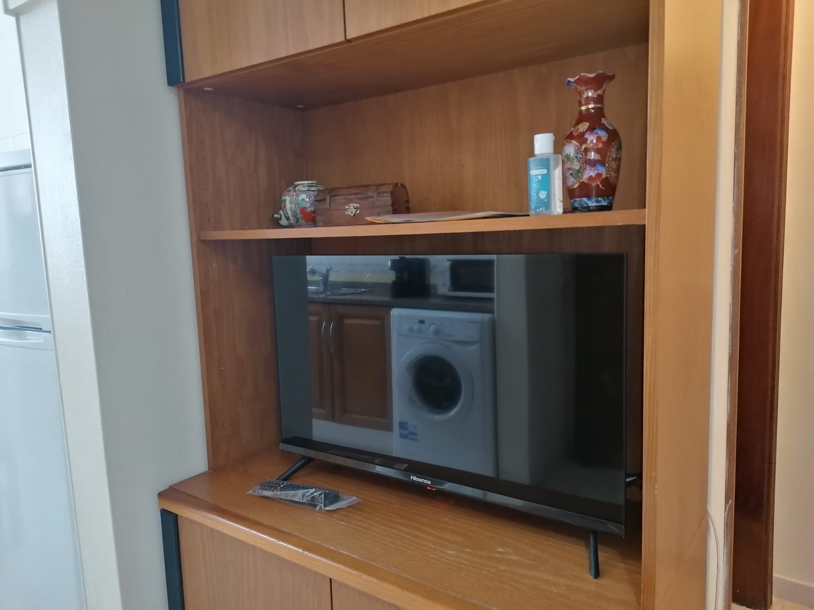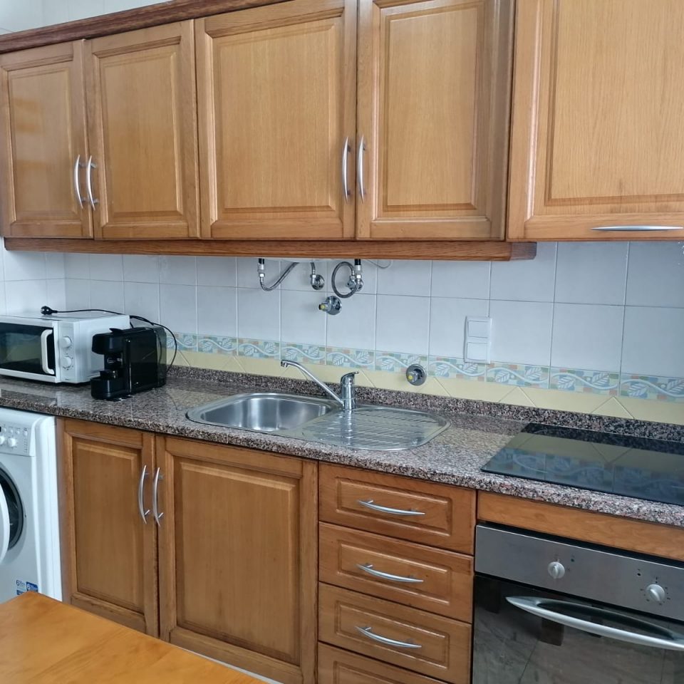 Apartamento T1 a 350 metros da praia de Monte Gordo, composto por um quarto, uma casa de banho com banheira e sala/cozinha.